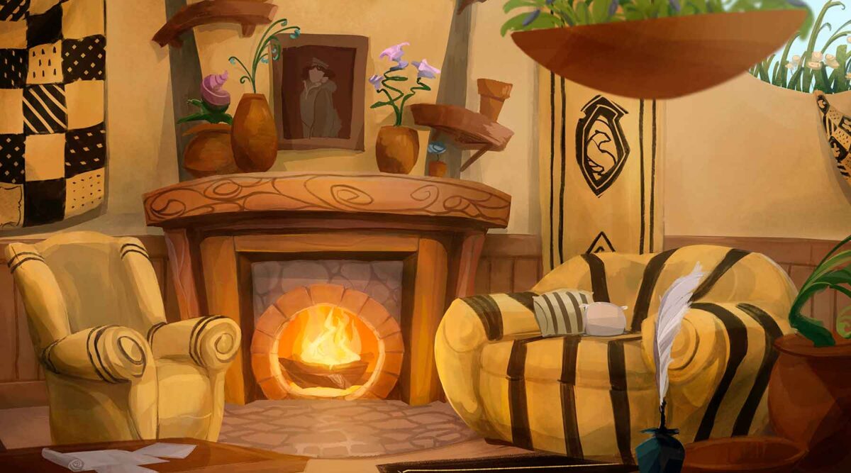 Ilustrando esse texto: Hufflepuff Common Room, por TofuSlaw, publicado no DeviantArt em 2017.